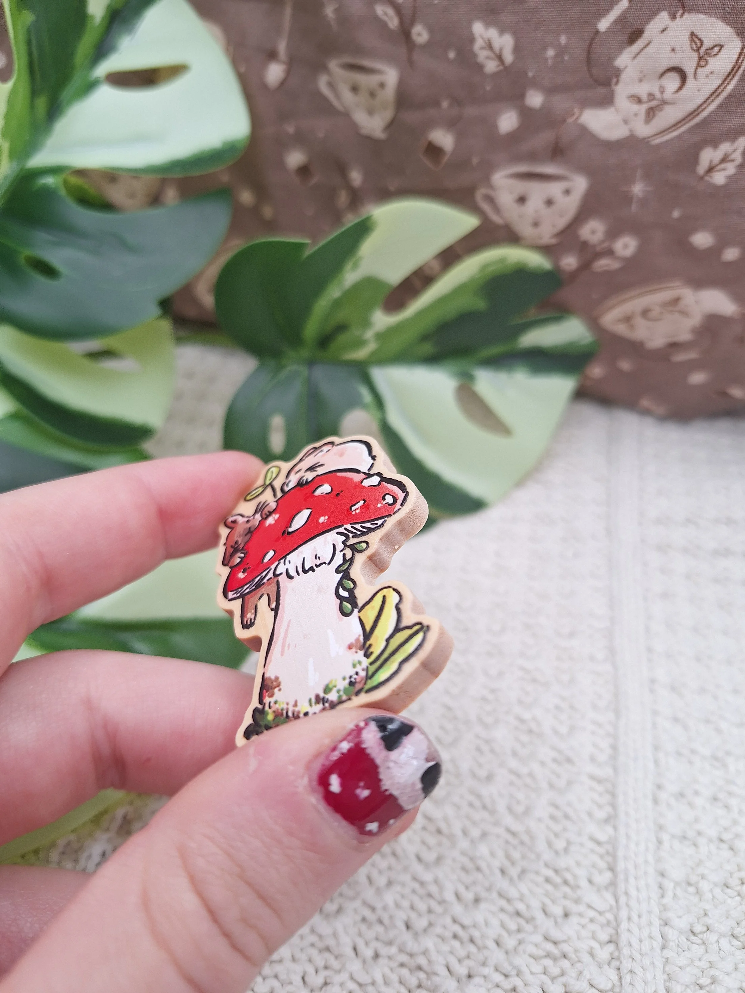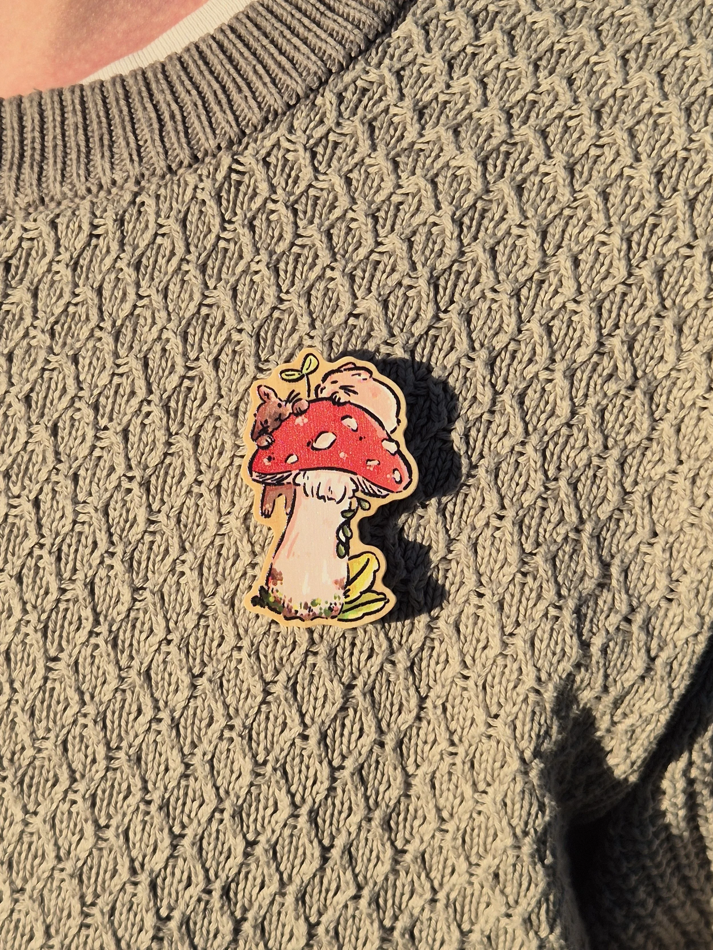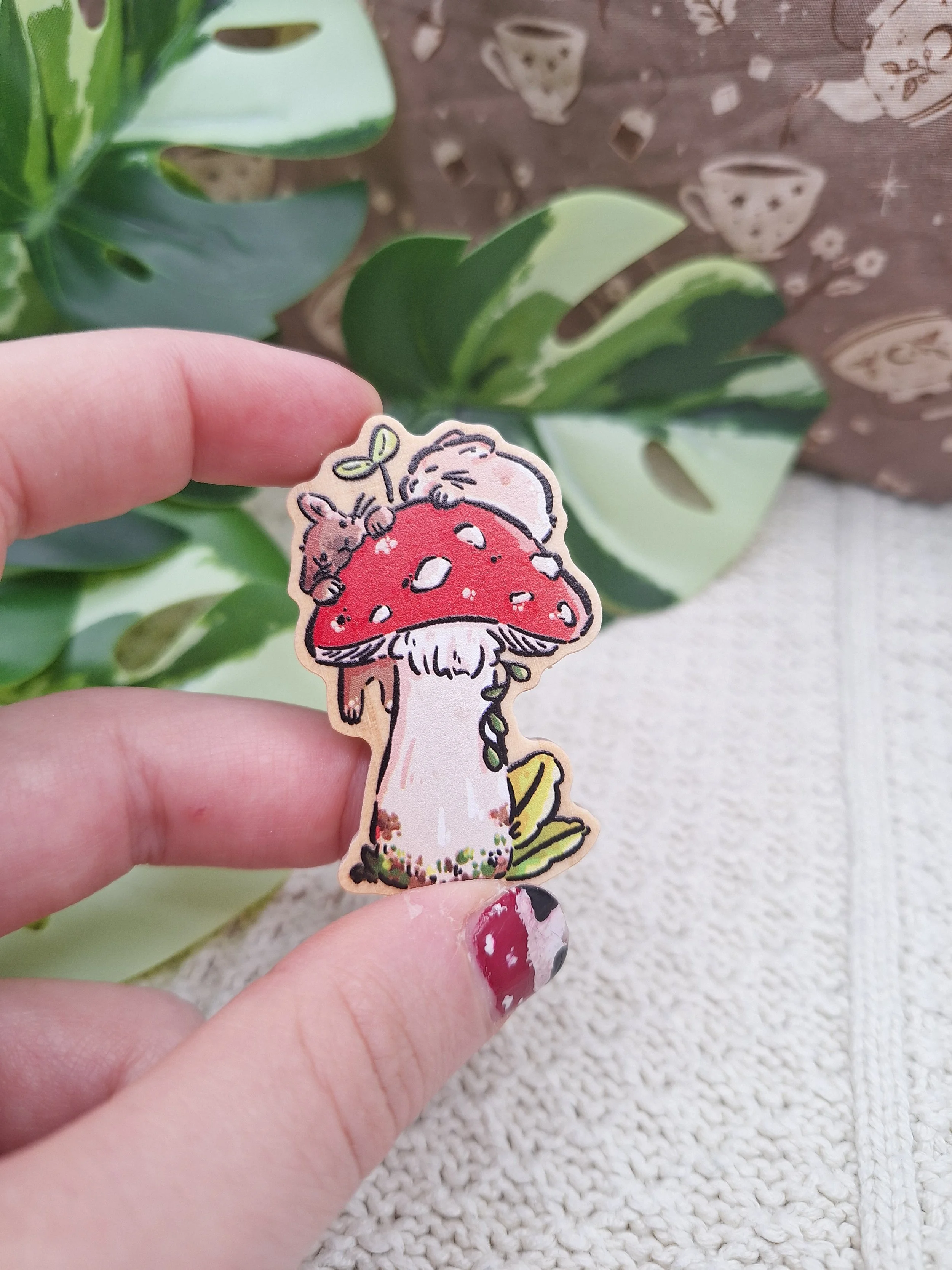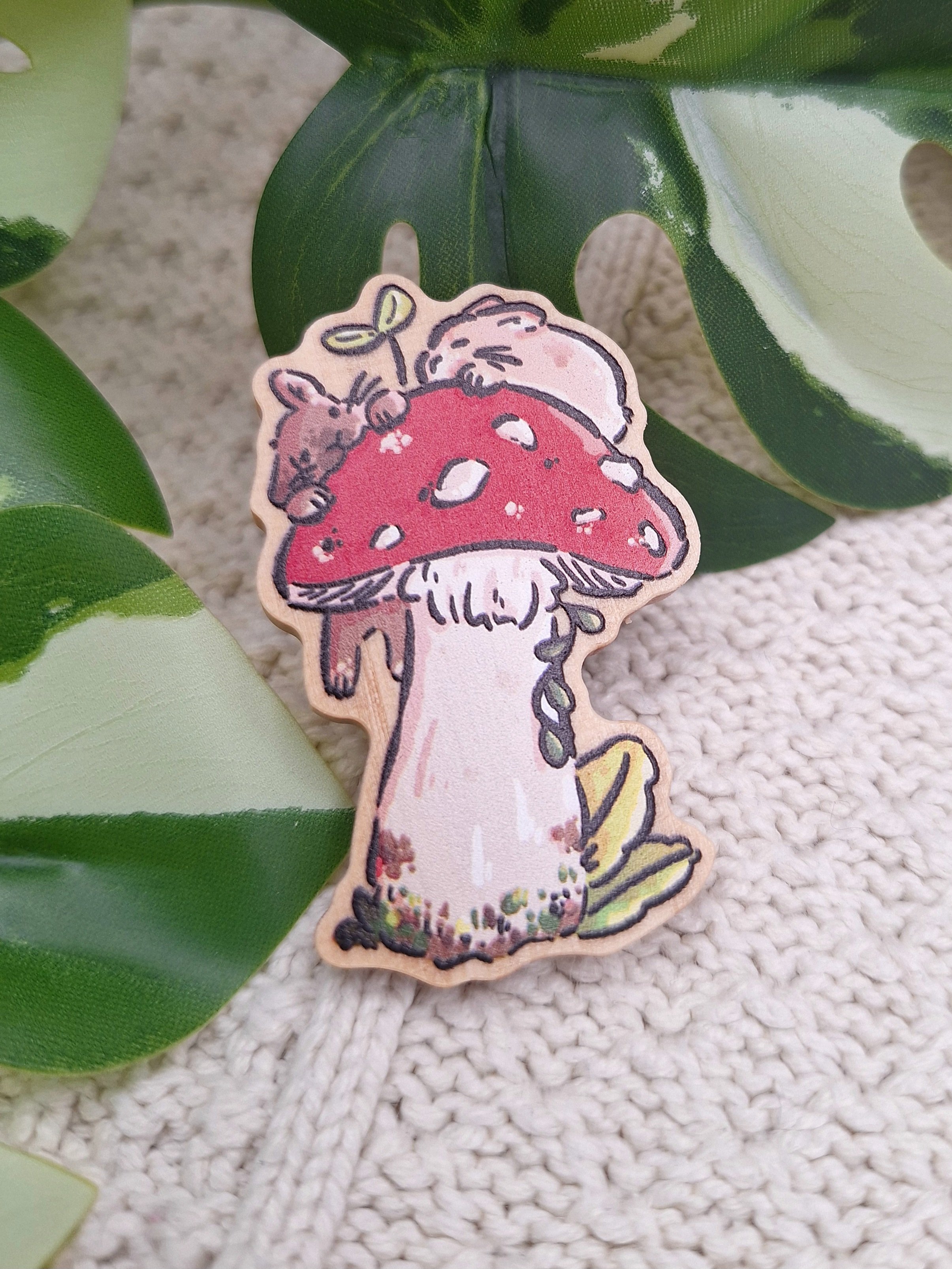 This adorable keychain consists of three connected small acrylic charms from top to bottom: a cute little leaf, an adorable bunny disguised as a frog and a mushroom.