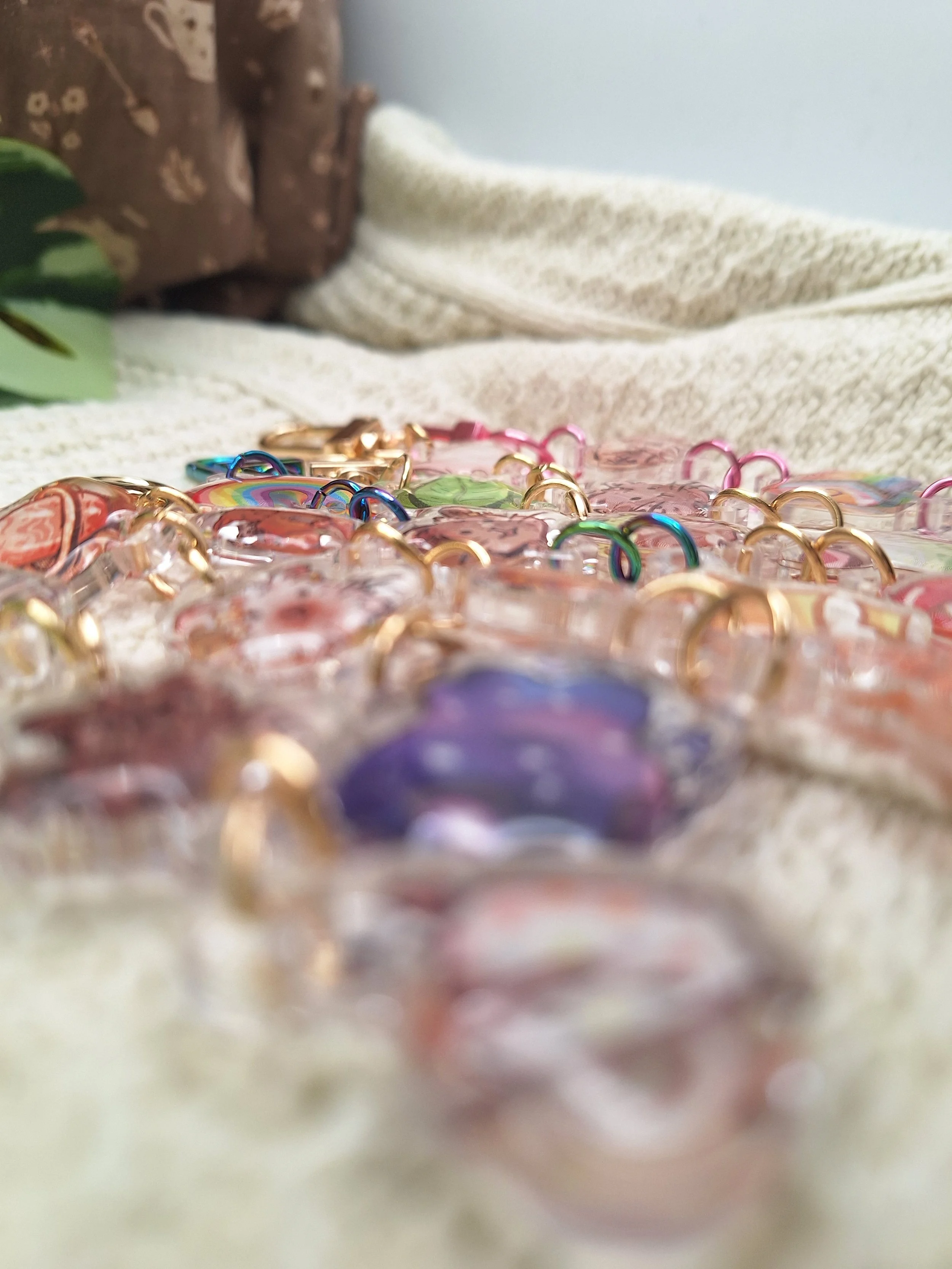 each charm is about 2.5cm (1in) long, the whole keychain including the clasp is about 12.5cm (5in) long