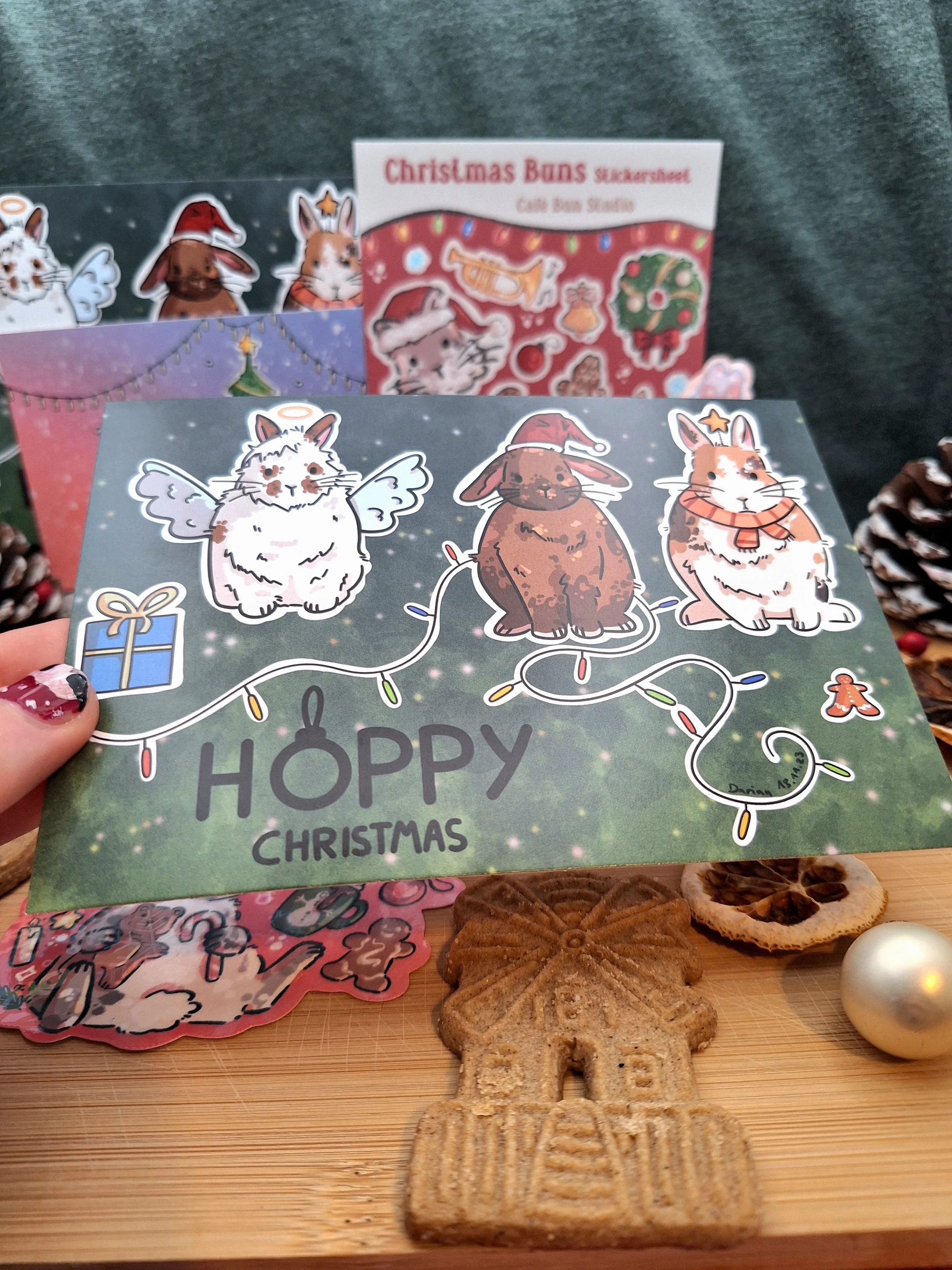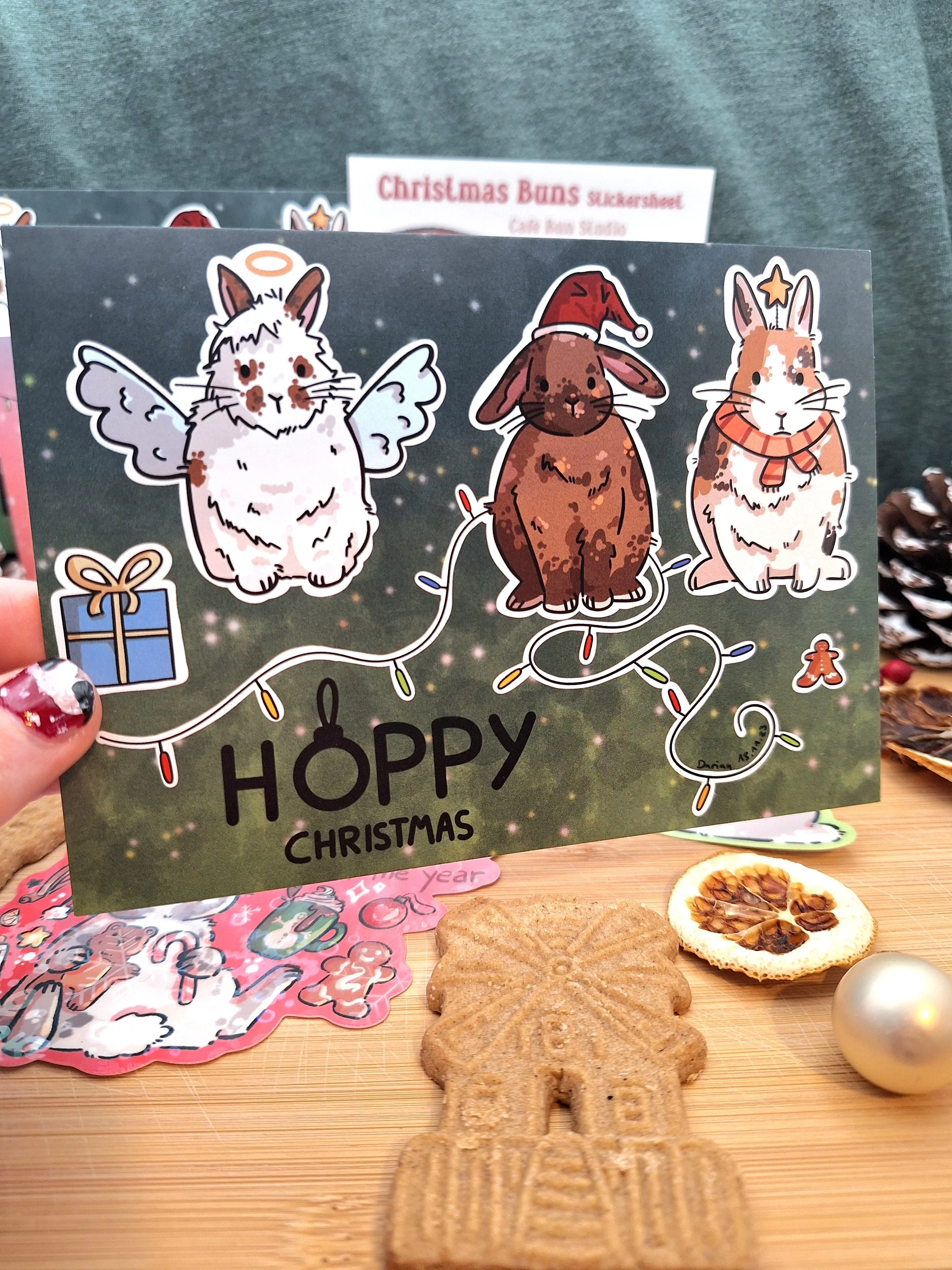 This cute holiday card features three buns and is perfect for sending your bunny obsessed loved ones christmas greetings.