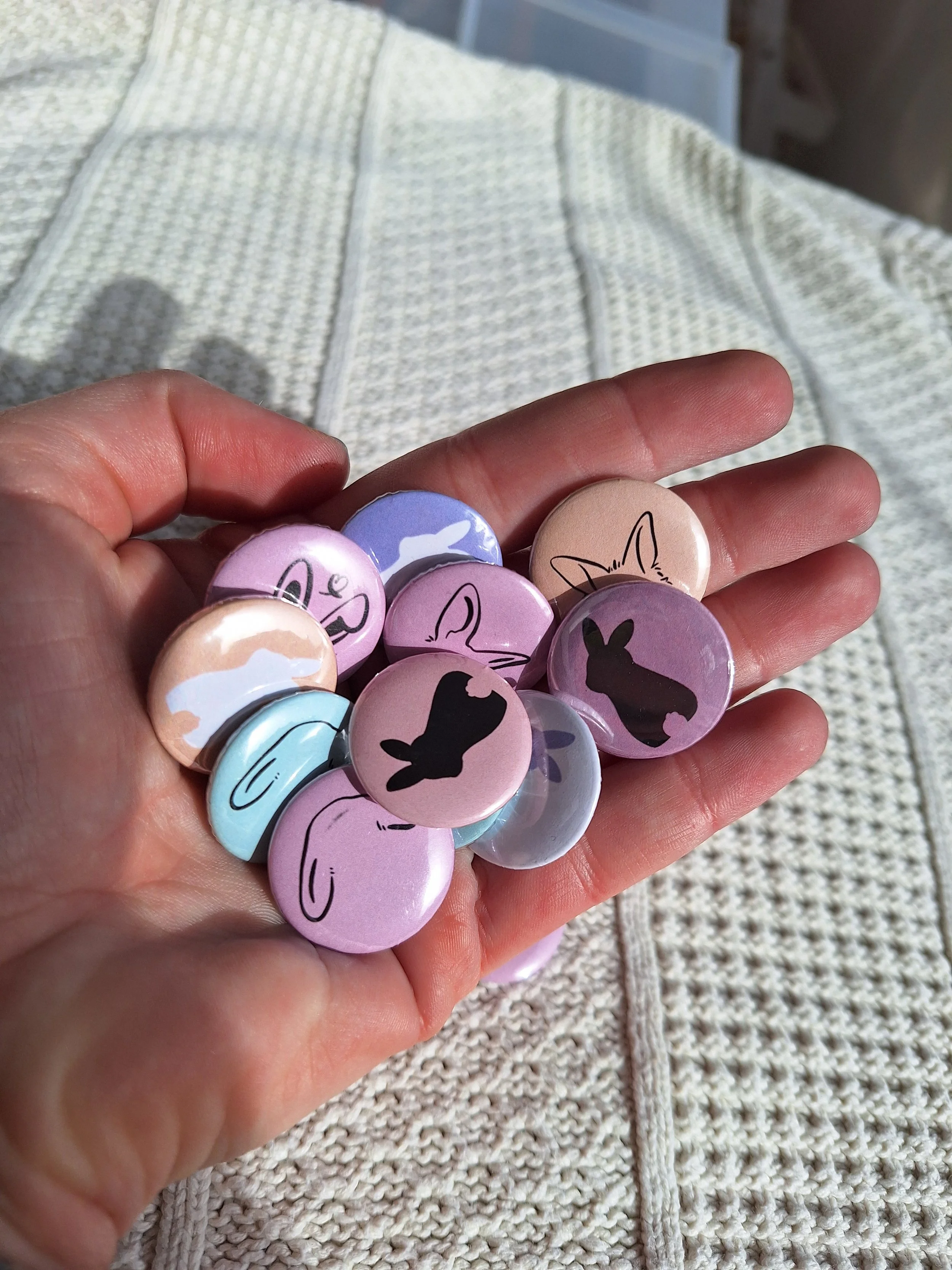 Shop › Mystery Small Bun Button Pin Image 1 of 3 Image 2 of 3 Image 3 of 3 Mystery Small Bun Button Pin Sale Price: €1.00 Original Price: €2.00 You can get a cute button pin (25mm diameter) with different simple bunny designs in a random colourway! Add To Cart Added! You can get a cute button pin (25mm diameter) with different simple bunny designs in a random colourway! Reviews Reviewer Name Review Date Star Rating Description Posted on Etsy Product Show More You Might Also Like Bunmom, Bundad & Bunparent Button Pin from €3.00 Ask me about my Bunnies! Button Pin from €3.00 I like Bunnies more than People! Sticker €3.00 Wiesenbärenklau Fanclub Button from €3.00 Free Bunny Photocards €0.00