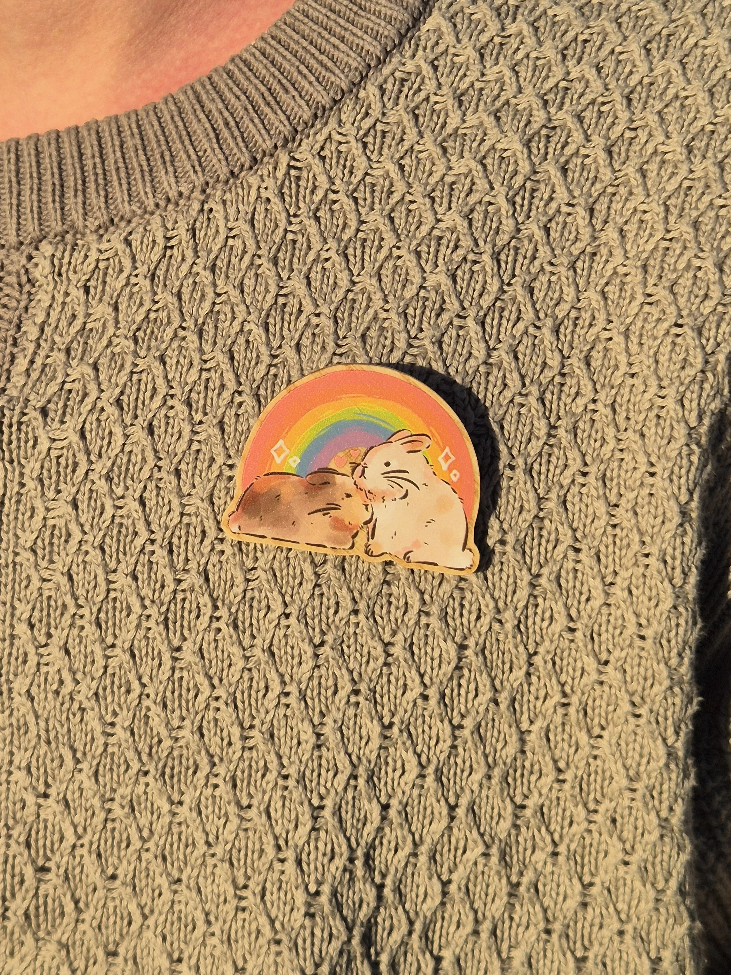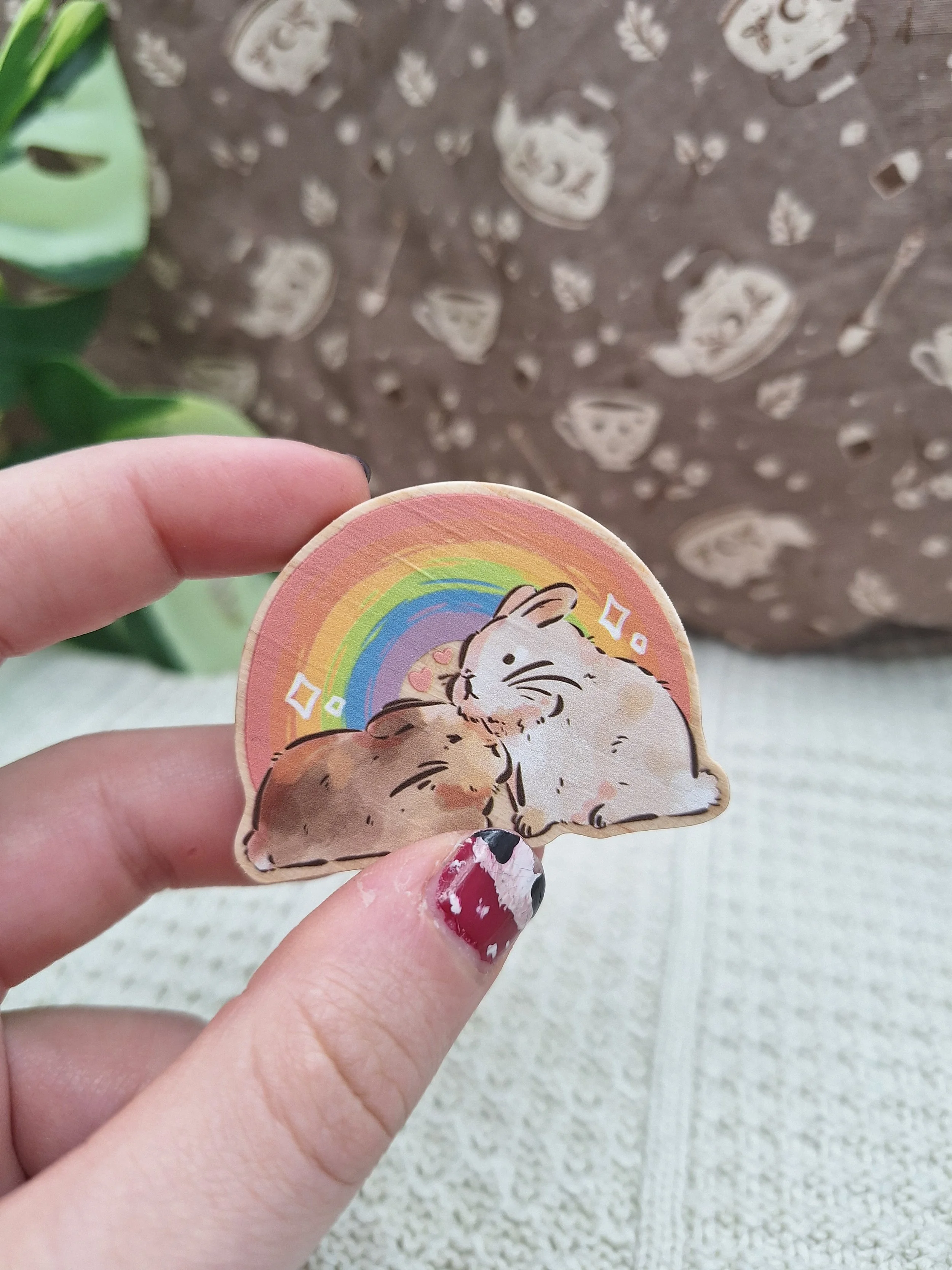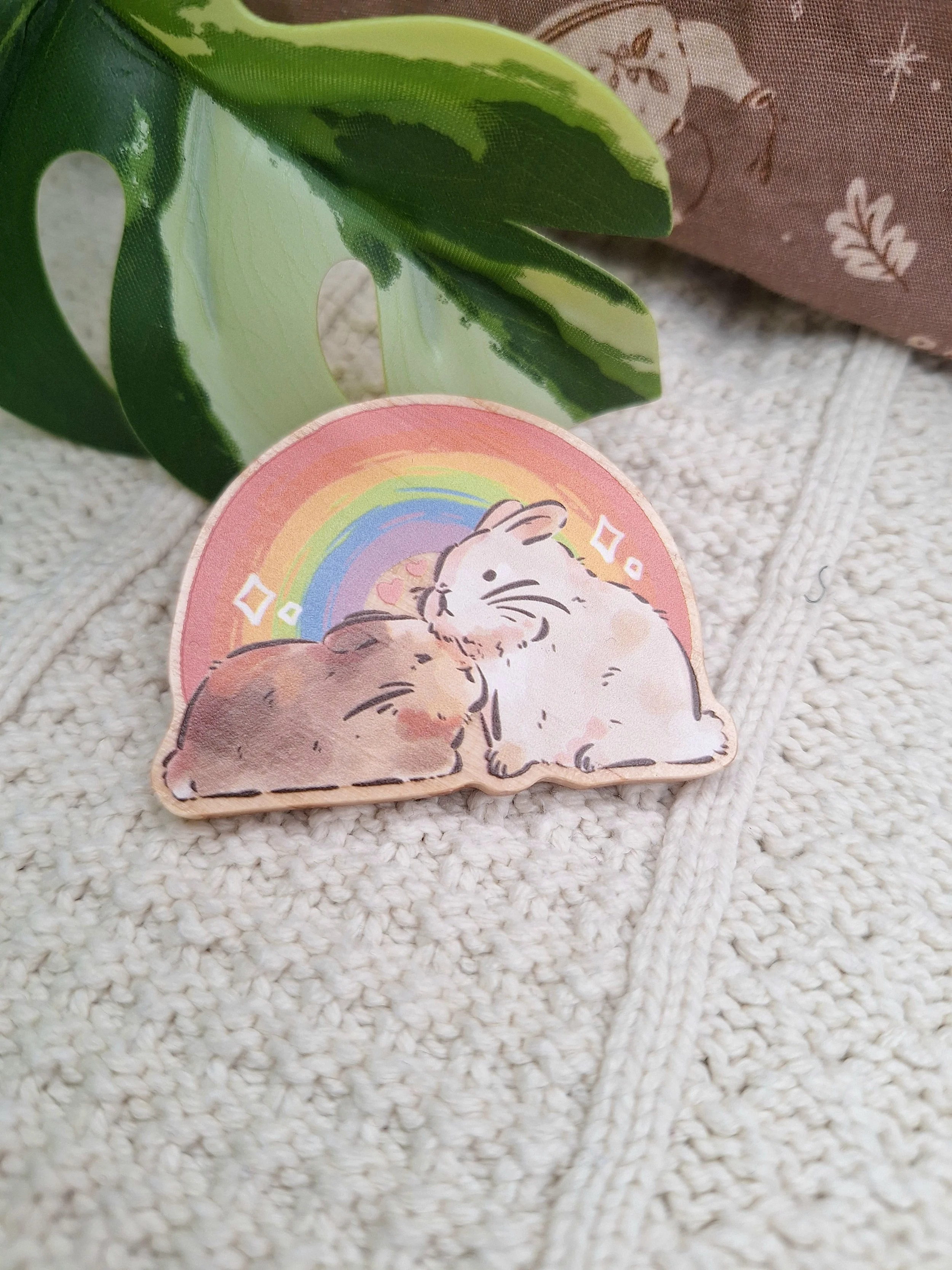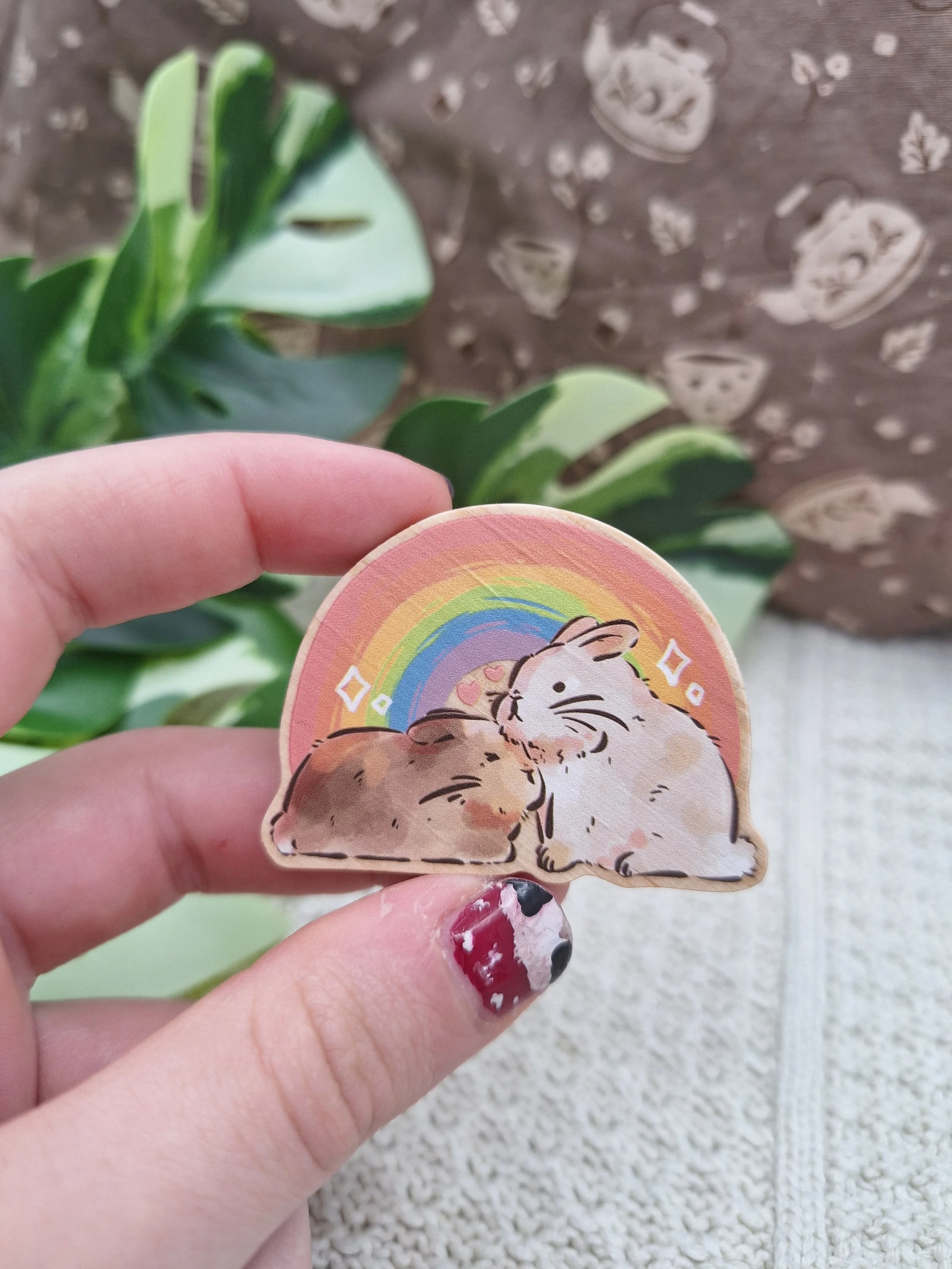 Never write with boring pens again! This adorable black ballpoint pen features an acrylic charm of bun being drawn up by a rainbow UFO.